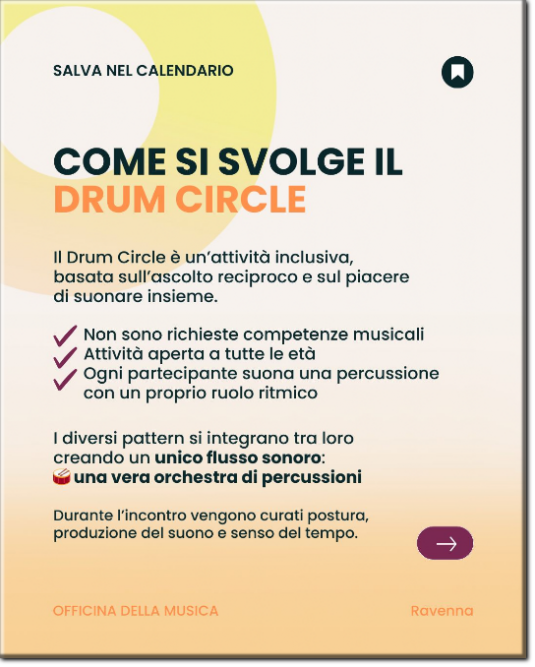Un laboratorio di percussioni aperto a tutti, adulti, bambini e percussionisti con disabilità, offre un'esperienza musicale davvero unica e arricchente per tutti i partecipanti.